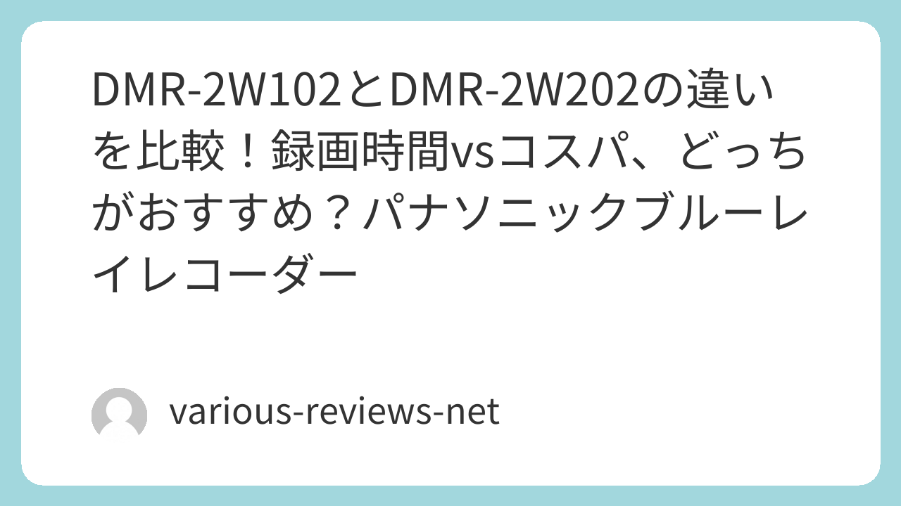 パナソニックのブルーレイレコーダー「DMR-2W102」と「DMR-2W202」の違いを、迷っている人向けにわかりやすくまとめます。